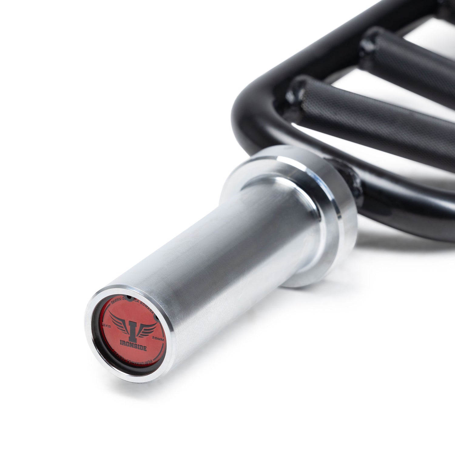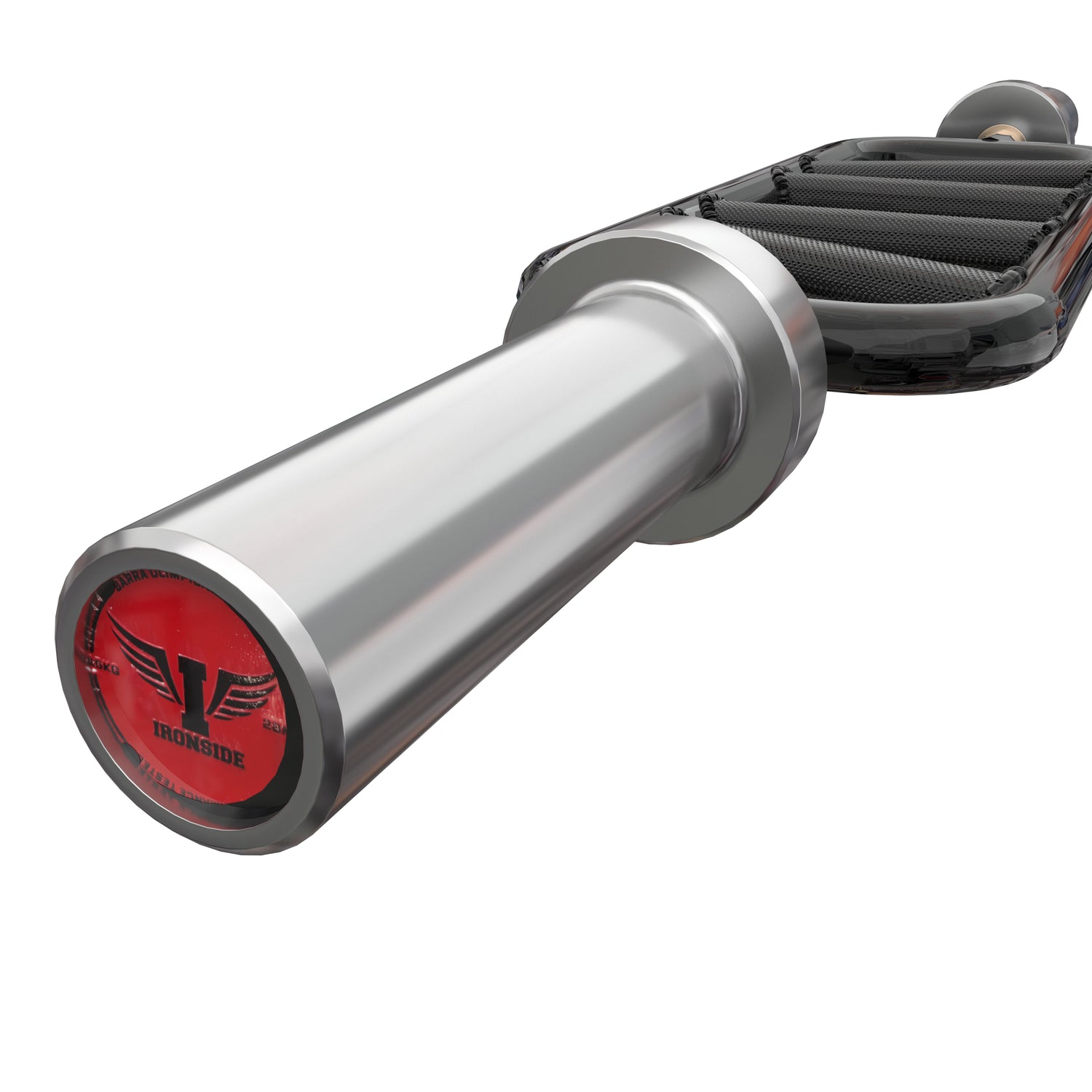 El acabado combina mangas cromadas con recubrimiento por electroforesis en negro, ofreciendo mayor resistencia a la oxidación y al desgaste por fricción. Su diámetro de agarre es de 28 mm, y sus mangas olímpicas de 50 mm son 100% compatibles con discos IRONSIDE y otras marcas de estándar internacional.