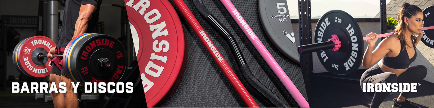 Desde $481.990Precio unitario /AgotadoPack IRONSIDE Barra Rosada Cerakote 15 kg + Set Discos Pro Bumper (100 o 150 kg)