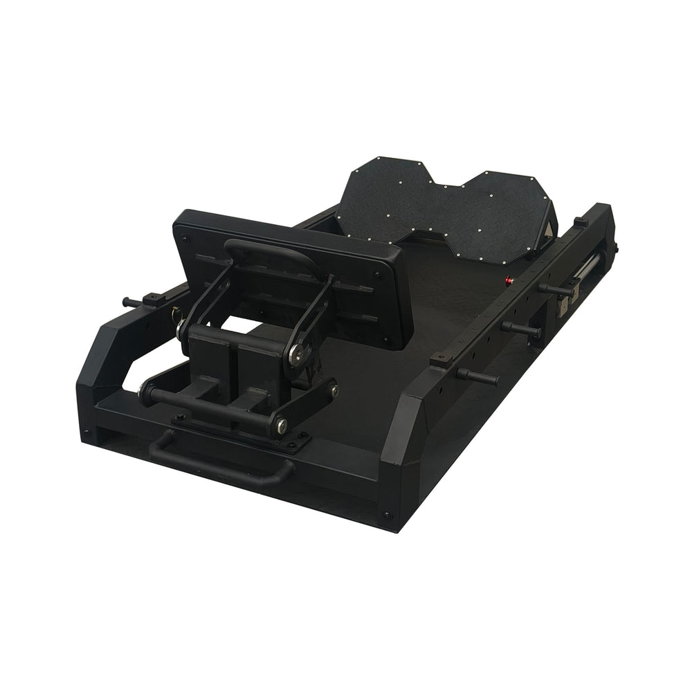 Construida con acero estructural y geometría compacta (188 × 101 × 50 cm), la máquina mantiene una base rígida que evita vibraciones y permite ejecutar repeticiones pesadas sin comprometer estabilidad. Sus cojines de apoyo están diseñados para soportar presión repetida sin hundimiento, manteniendo un tacto firme que no altera la mecánica del thrust.