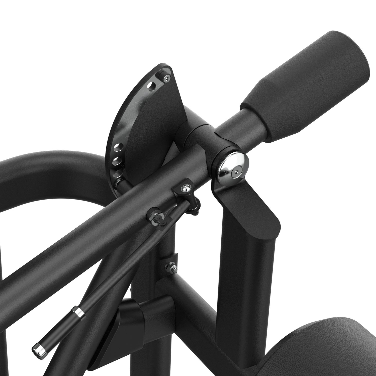 La Hip Thruster IRONSIDE Luxe incorpora un brazo de movimiento ajustable en 5 posiciones y una altura inicial regulable en 4 niveles, permitiendo adaptar el rango a distintas estaturas y necesidades. Cada ajuste está verificado biomecánicamente, garantizando ángulos de carga óptimos sobre la articulación de la cadera.