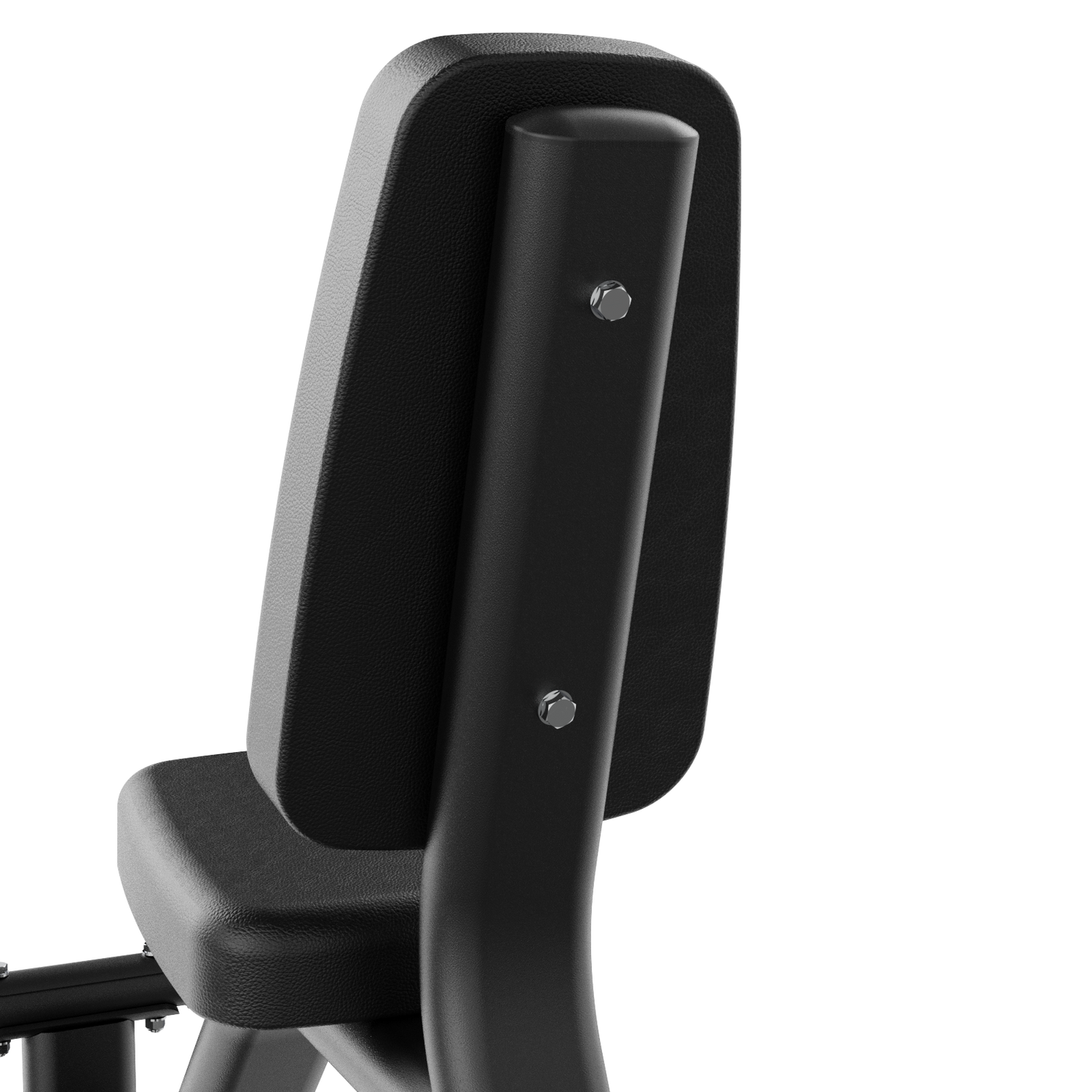 El respaldo inclinado a 100° crea una relación cómoda entre pelvis, caja torácica y cintura escapular: suficiente verticalidad para estimular deltoides anterior y fascículos claviculares del pectoral, pero con soporte que evita compensaciones por hiperextensión lumbar. Esta configuración hace que el levantador pueda bloquear fuerte arriba sin “romper” la postura, algo decisivo cuando se entrenan top sets, drop sets o progresiones con pausas. La superficie del respaldo distribuye la presión de forma pareja, lo que reduce puntos de molestia y mejora la propriocepción del empuje.
