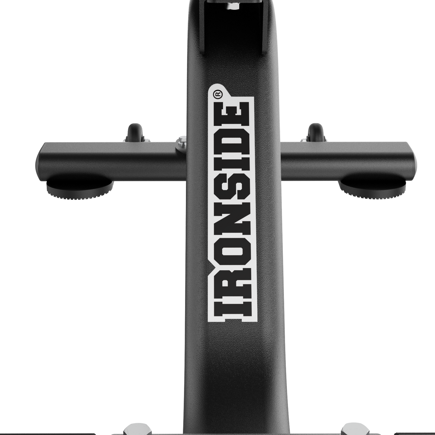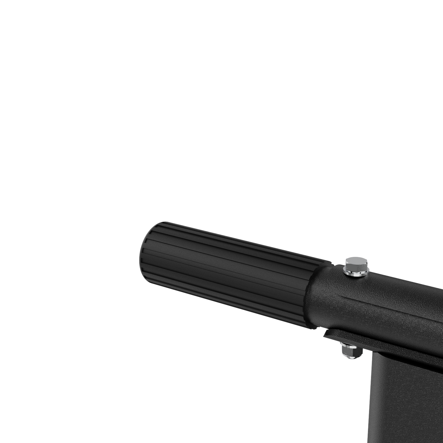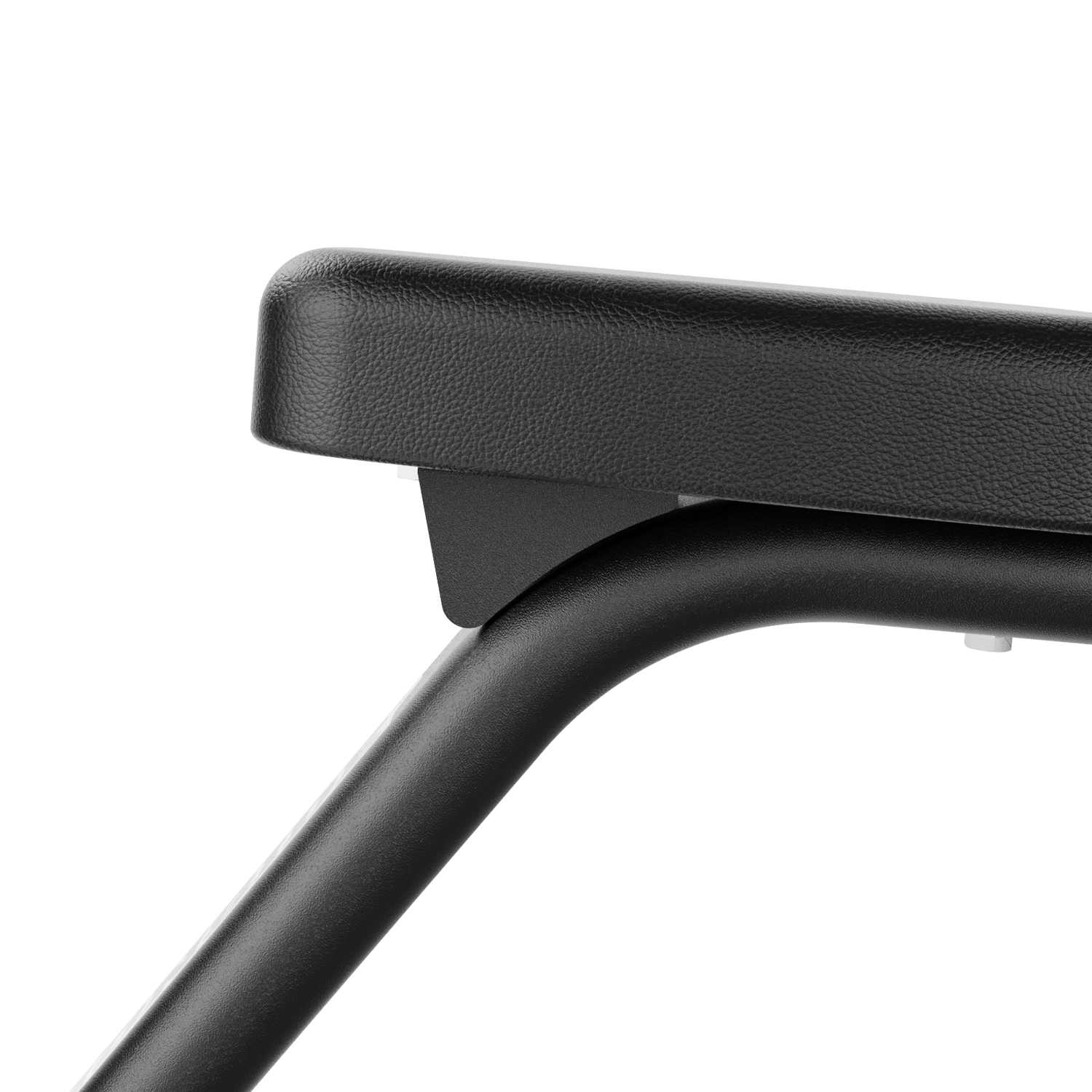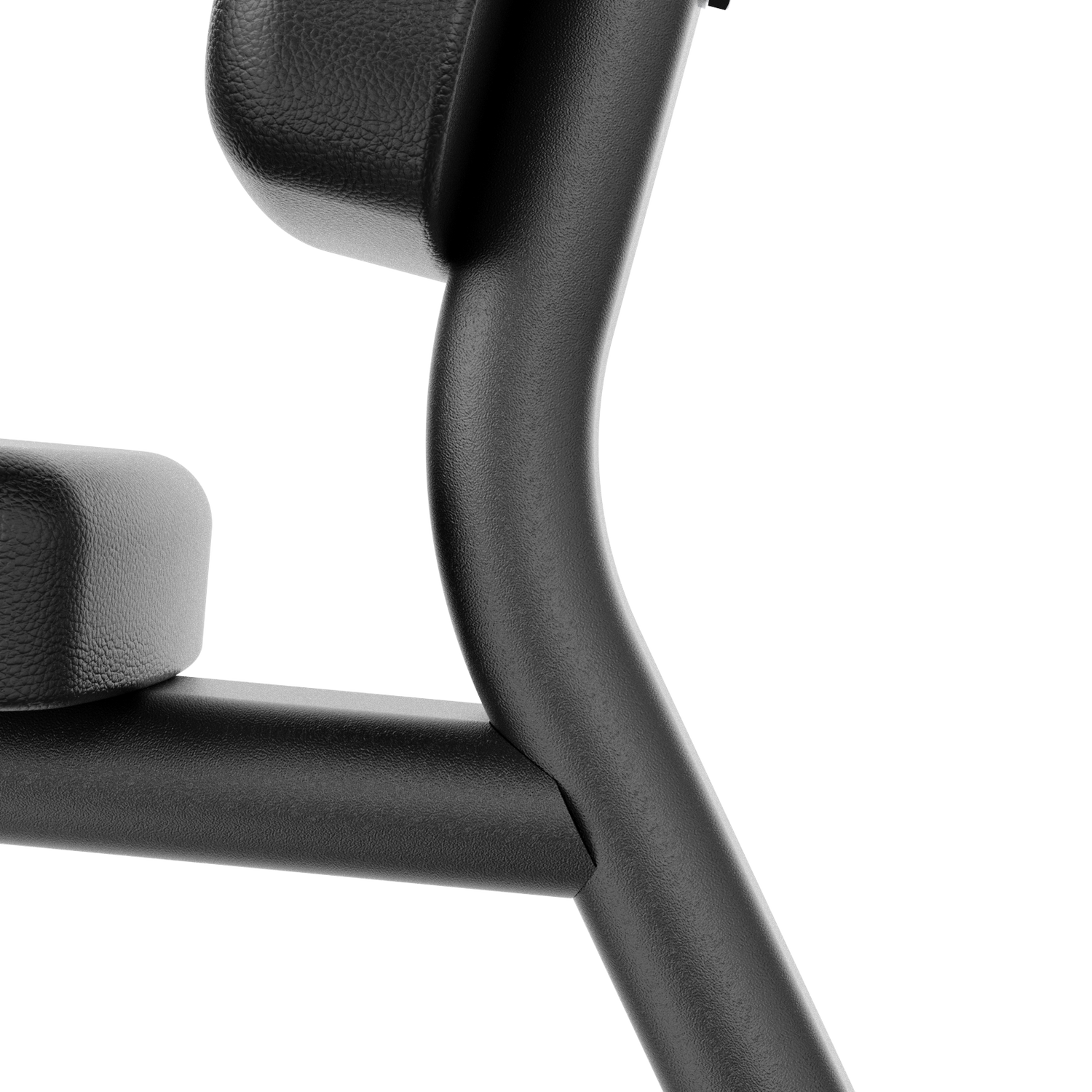 Para reforzar esa estabilidad, el banco incorpora soportes de pies integrados que permiten fijar la base con una presión homogénea del tren inferior, mejorando el “bracing” y controlando la extensión de la columna durante la fase concéntrica. La superficie de apoyo y la altura funcional de los reposapiés están calculadas para usuarios de diferentes tallas, de modo que se pueda replicar el mismo seteo de una sesión a otra sin ajustes complejos. El resultado práctico es más potencia útil en el rango efectivo de movimiento y menos correcciones durante la serie.