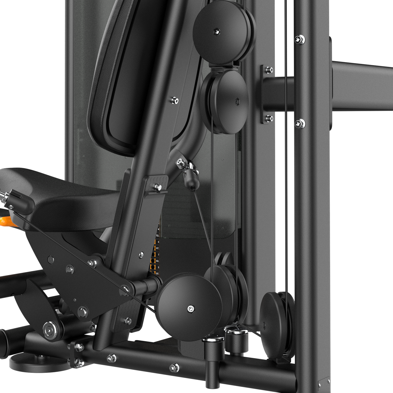 La estructura se fabrica en acero Q235A laminado en frío con recubrimiento electrostático de doble capa, lo que entrega rigidez y resistencia a la corrosión bajo rotación alta de usuarios. El acolchado de espuma de alta densidad recubierta en PU ofrece soporte firme y homogéneo, mientras que la pila de pesas de 105 kg (ampliable a 117,5 kg) asegura progresión real sin saltos bruscos de carga. Cada componente está orientado a sostener la técnica correcta: estabilidad del banco, trayectorias consistentes y ajustes rápidos que evitan tiempos muertos.