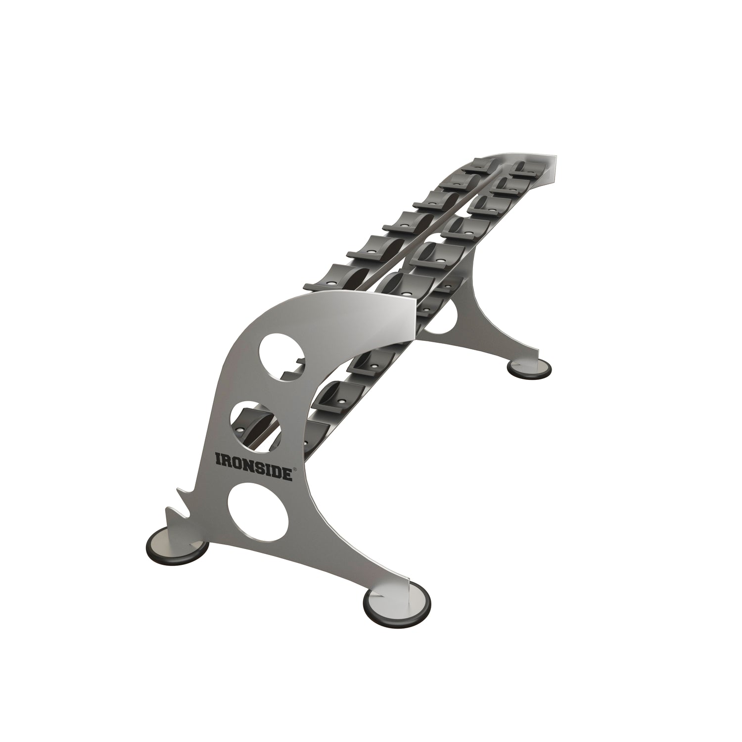 Inversión que protege el resto de tu equipamiento. Evitar golpes y rodaduras sobre el piso alarga la vida útil de tus mancuernas y del revestimiento, por lo que el rack paga solo en mantenimiento ahorrado. Si estás creciendo tu sala, este modelo se integra de forma modular con otros bastidores IRONSIDE, manteniendo una línea estética y operativa coherente.