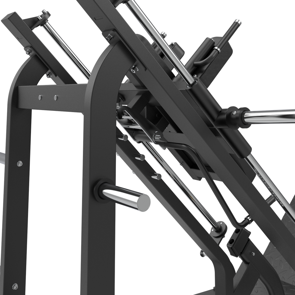 La Hack Squat Plate Loaded IRONSIDE Luxe está diseñada para quienes buscan un entrenamiento profesional enfocado en el desarrollo de los cuádriceps, glúteos y femorales. Su estructura robusta y su ingeniería biomecánica permiten un rango de movimiento fluido y seguro, asegurando que cada repetición maximice la activación muscular sin comprometer las articulaciones. Esta máquina se adapta tanto a gimnasios comerciales de alto tráfico como a home gyms avanzados que requieren un estándar de calidad superior.