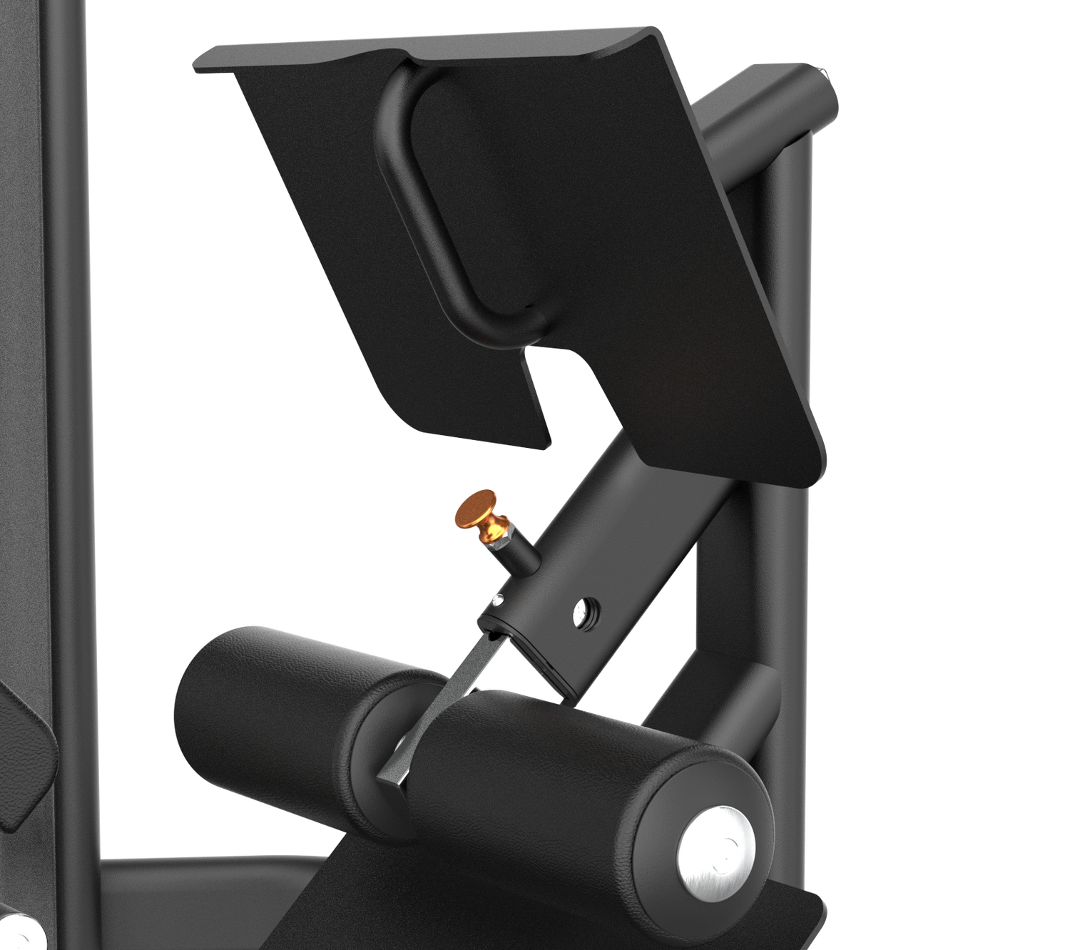 La plataforma de pies de doble ángulo (plano + inclinado) con textura antideslizante amplía las opciones de colocación y reduce la exigencia de movilidad de tobillo cuando es limitada, manteniendo un contacto estable incluso en repeticiones pausadas. Los asideros laterales facilitan la entrada/salida y sirven como puntos de apoyo para fijar el tronco en las primeras repeticiones, evitando que el usuario busque equilibrio cuando la carga ya está alta. Cada superficie de contacto está pensada para uso prolongado, con acolchados de densidad firme que no ceden con el tiempo.