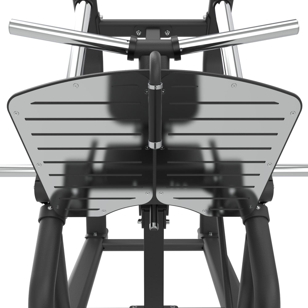 La zona de apoyo de pies incorpora protecciones de PVC de alta densidad, diseñadas para resistir impactos, proteger el acabado del equipo y mantener la estética profesional a lo largo del tiempo. Su diseño compacto, combinado con funciones de alto rendimiento, la hacen ideal para entornos que trabajan fuerza estructurada, hipertrofia o rehabilitación de tren inferior.